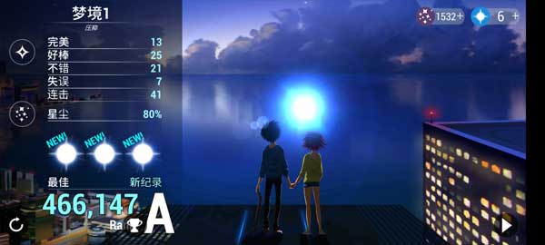 6、音樂跑酷結束之后,玩家就能查看你的分數記錄、失誤、連擊數量等參數,如果想要重新開始點擊刷新按鈕即可。