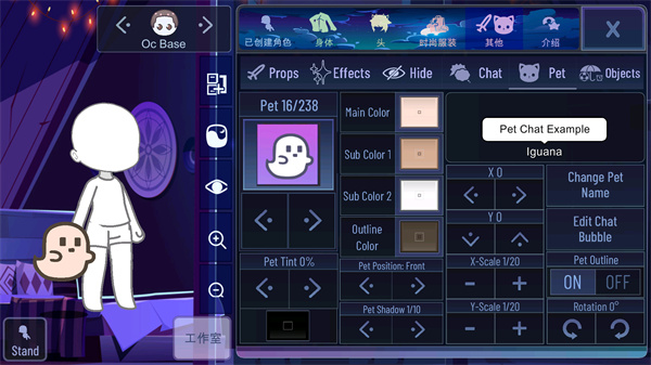 - 讓您的角色與自定義文本框相互交流,寵物也可以!