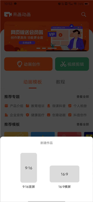 2、選擇你需要制作動畫的屏幕比例;